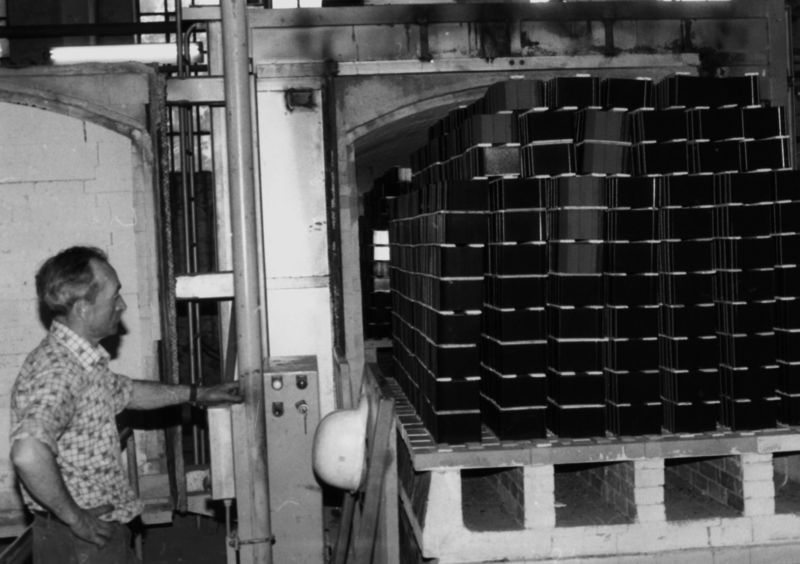 Fabrieken / Bedrijven | Een electrische oven, waarin o.a. keramiek gebakken werd (voornamelijk raamdorpels van TERCA) wordt gevuld door Wiel Heijnen | Keulseweg 36 | Offenbeek | |||||