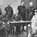 De eerste Nederlandsche Katholiekendag. De leden van het comité zijn (in zover aanwezig bij de komst van de fotograaf): zittend van links naar rechts: 1 Mgr. C.C. Prinsen, 2 Professor J.D.J. Aengenent, 3 Secretaris Mr. A. Baron van Wijnbergen, 4 Voorzitter mej. E.C. Broekelman, 5 adj. secretaris Mr. H. v.d.Biesen. Staande 1 NN. 2 NN. 3 NN. 4 Pastoor Jac. Vrancken, 5 NN |