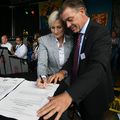 Beesel en Brüggen, Europa in het klein Duitsers stijf en formeel? Dat vooroordeel kon meteen in de prullenbak. Bij de ondertekening van het strategisch partnerschap tussen de gemeenten Burggemeinde Brüggen en Beesel bewezen de Duitse sprekers het tegendeel. En dat is misschien al de eerste winst van dit op Europadag - 9 mei - gesloten partnerschap. |