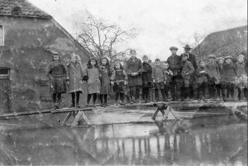 De Maas stond in 1926 zo hoog dat de Dorpstraat (huidige mgr. Theelenstraat) blank stond. De schoolmeester ging met de kinderen kijken en moest over de aangelegde steigers lopen. |