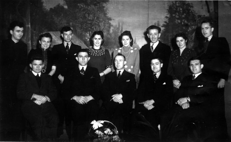 Toneelvereniging "Hierna Beter" uit 1933. van links naar rechts: zittend: 1 Jan Hoezen, 2 Pierre Spee, 3 Lei Lücker, 4 Sjraar Derks 5 Theo Hoezen. staande : 1 Herm Stroeken, 2 Wies Hoezen, 3 Pierre Geurts, 4 Bets van de Voort, 5 Lenie van de Voort, 6 Thijs Verdonk, 7 Ton Van de Voort, 8 Thijs Verlaek. |