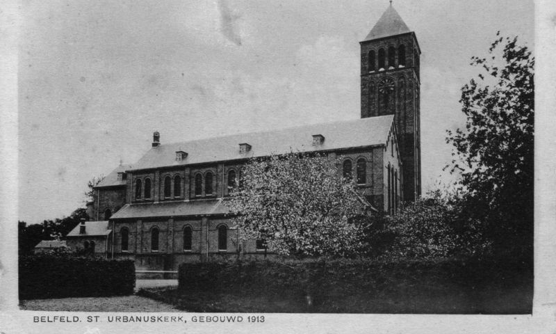 Kerk en religie | Prentbriefkaart met hierop een afbeelding van de oude Urbanuskerk in Belfeld welke in 1913 is gebouwd.. | Urbanusstraat | Belfeld | |||||