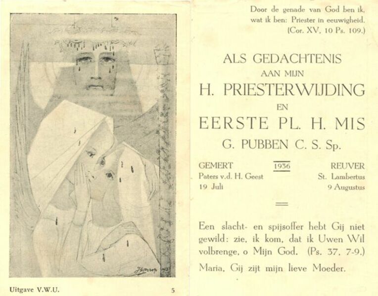 Gedachtenisprentje Eerste Plechtige Heilige Mis van G. Pubben. Zie ook foto's van de processie op deze beeldbank. |