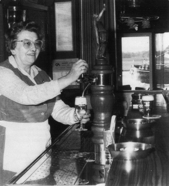 Café / Restaurant / Cafetaria | Truus Stevens - van Hooren achter de tap. | Belfeld | ||||||