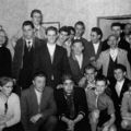 De stam als oudste van de verkenners (Voortrekkers van de Dr. Ariënsstam) voor hun jaarlijkse revue, welke toentertijd jaarlijks een meerdaagse revue opvoerde om o.a. de kas te spekken van de nieuwbouw van de blokhut uit Belfeld in 1958. De bovenste rij, van links naar rechts: Paul Janssen (van de Sjilder), Math (of Graad) Tosserams. Renie Lamers, Koen Bloemers, Piet Buskens, Herm Tosserams, Lei Jetten en Sef Hoezen! Tweede rij van boven, van links naar rechts : Herm Douben, Kapelaan Rietjes Meer ... |