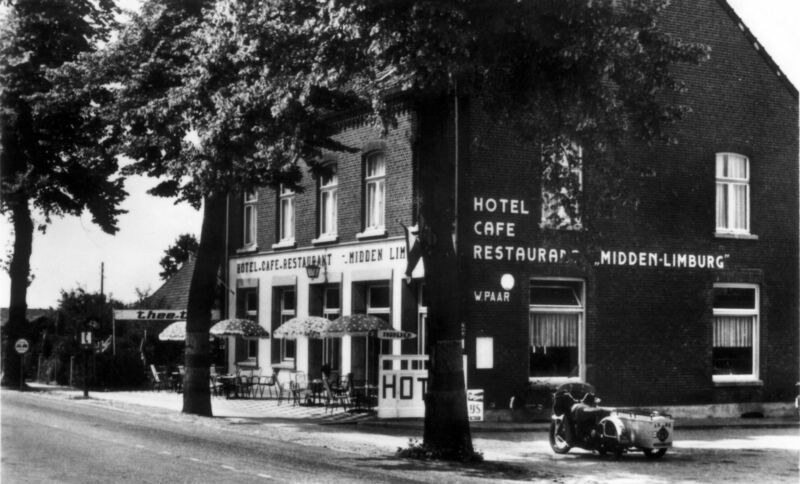 Hotel Café Restaurant Midden-Limburg,. Met op de parkeerplaats de vaste plek de motor van de wegenwacht. |