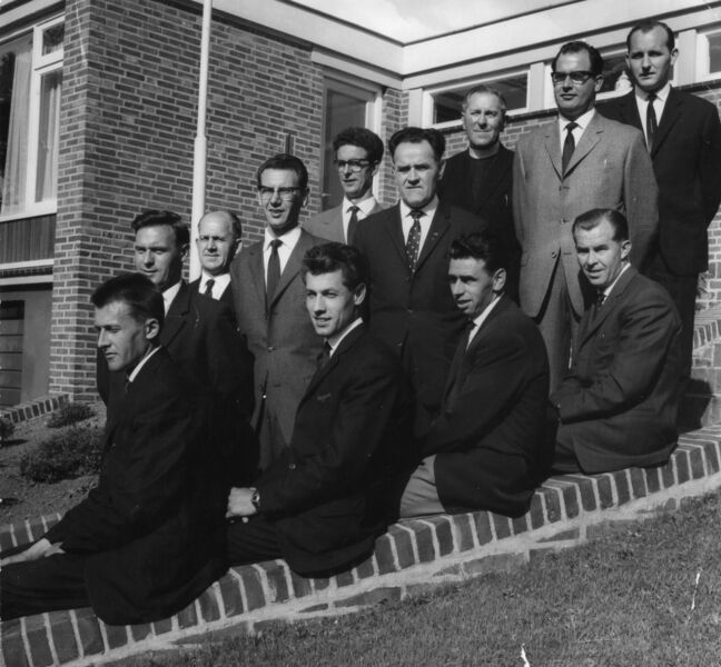 Op de foto staan o.a. Belfeldia “coryfeeën” . Zittend op muurtje v.l.n.r. Paul Engelen,Har houwen, Lou Brauer, Sjra Beijers. Staande v.l.n.r. Frans Peeters, Piet Douben, Paul Derks, Harie Thijssen, Herm Janssen, Kapelaan Haanen, Jan Naus, Jac Hendriks. |