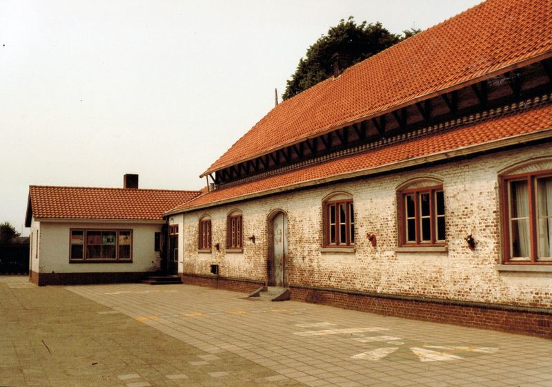 De achterzijde van de oude Sint Jozefschool in Beesel. Het gebouw stamt uit 1883 en is ontworpen door architect Johan Kayser, de architect van de Sint Lambertuskerk in Reuver. |
