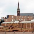 De achterzijde van het Luxor theater van Paquay voordat alles werd afgebroken. De schuur links was ook van Paquay. Hierin maakten ze vroeger de asperges schoon. |