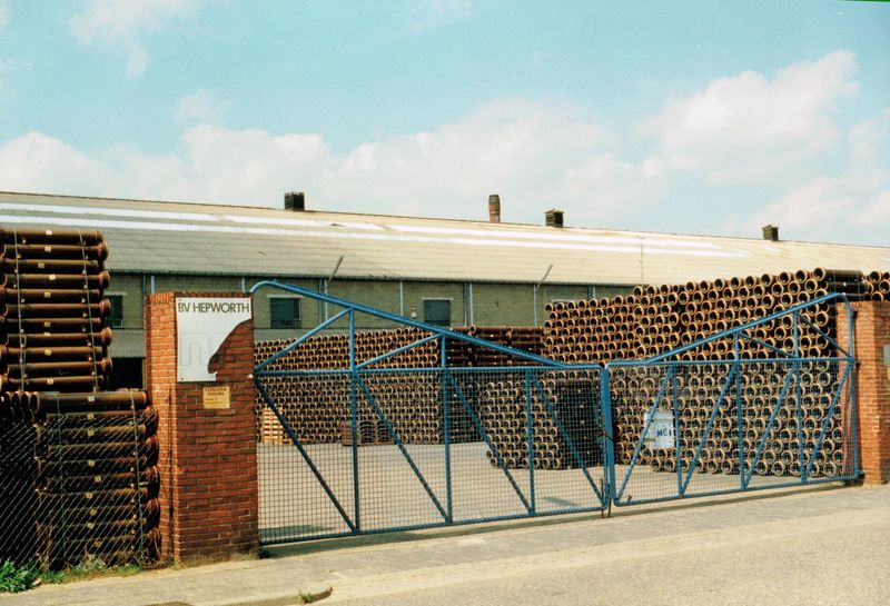 De gresbuizen liggen gestapeld langs het hekwerk aan de Mariastraat (opslag b.v. Hepworth - voorheen Teeuwen) Dit bedrijf heette uiteindelijk EUROCERAMIC en was onderdeel van STEINZEUG in Hasselt, dat op zijn beurt weer onderdeel was van WIENERBERGER met hoofdzetel in Wenen. Ook de N.G.I. in Belfeld hoorde hierbij. |