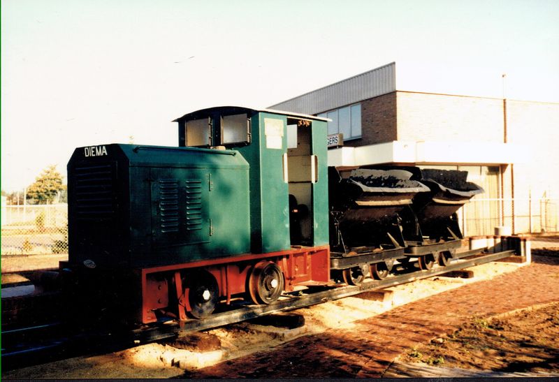 De Tuf (een oude locomotief voor het vervoer van klei) staat opgesteld voor de deur bij Brickburgers als herinnering aan het verleden. |
