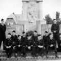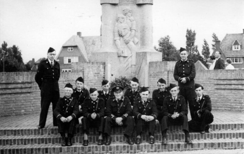 De vrijwillige brandweer van Reuver. van links naar rechts: Staande: 1 Jan Dohmen (Chauffeur), 2 Jan van Neer hurkend: 1 Harrie Franssen, 2 Toon Beckers, 3 Cor Wijnands, 4 Frans Peeters, zittend: 1 Frans Wijnands, 2 Tom Schattorie, 3 Lei Peeters, 4 Hillekens, 5 Wiel Franssen. 6 Alex Nelissen |
