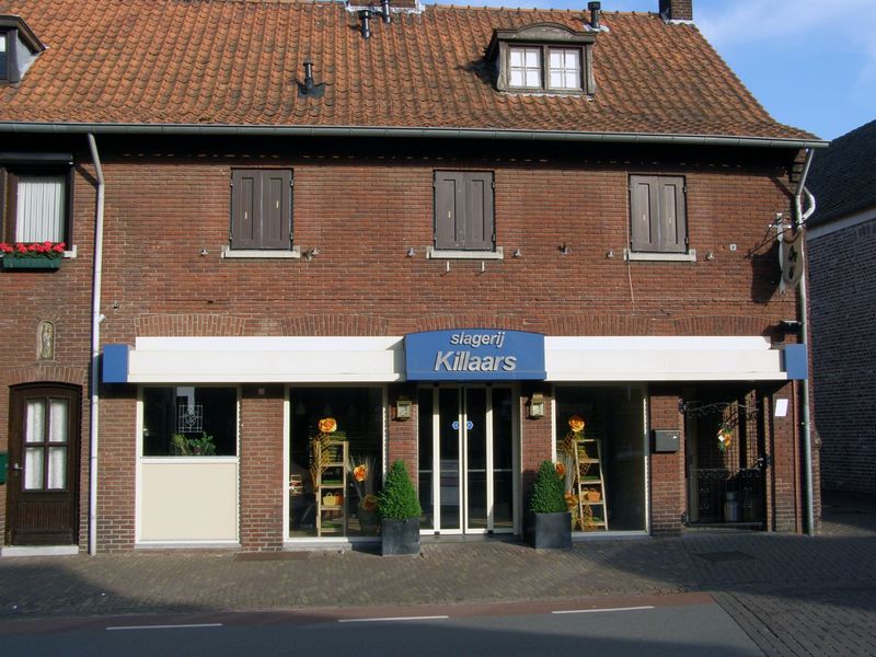 Kwaliteitslagerij Killaars VOF in hun nieuwe winkel. Geschiedenis van het pand: 1858 Bouw van het pand door Peter Joseph Meuter die er een branderij - brouwerij had. 1883 Jozef en Willem Goertz Landbouwers 1899 Leonard Reijnders en zijn vrouw Elisabeth Neys die er samen een bakkerij hadden. 1943 Henricus Janssen en zijn vrouw Petronella Gertruda Elisabeth Reijnders hadden er een een slijterij. 1971 Café - eetcafé de Drakebôch van Johannes Joseph Godefridus Theelen en zijn echtgenote Gu Meer ... |