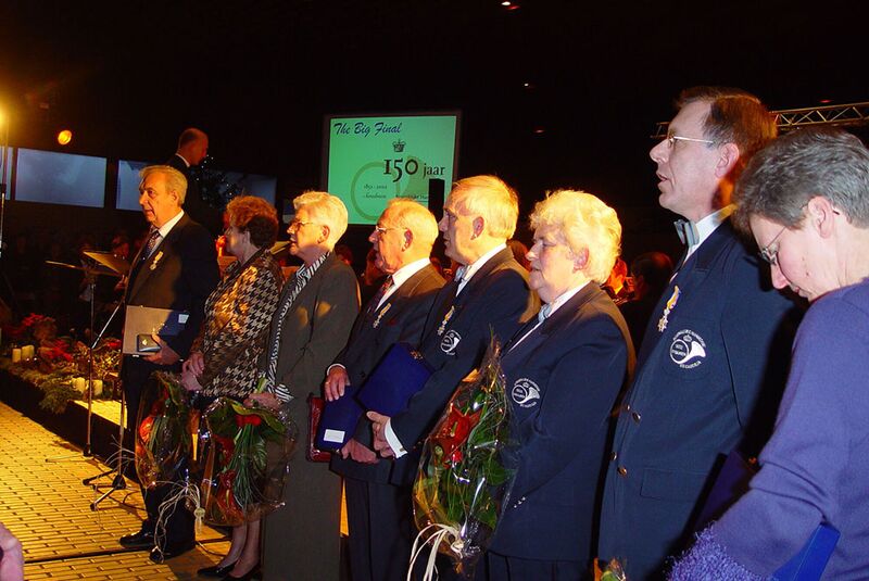 Verenigingen en organisaties | De Harmonie Sint Ceacilia uit Swalmen tijdens het slotconcert in 2002. De jubilarissen worden gehuldigd | Swalmen | 29-12-2002 | 2002 | ||||