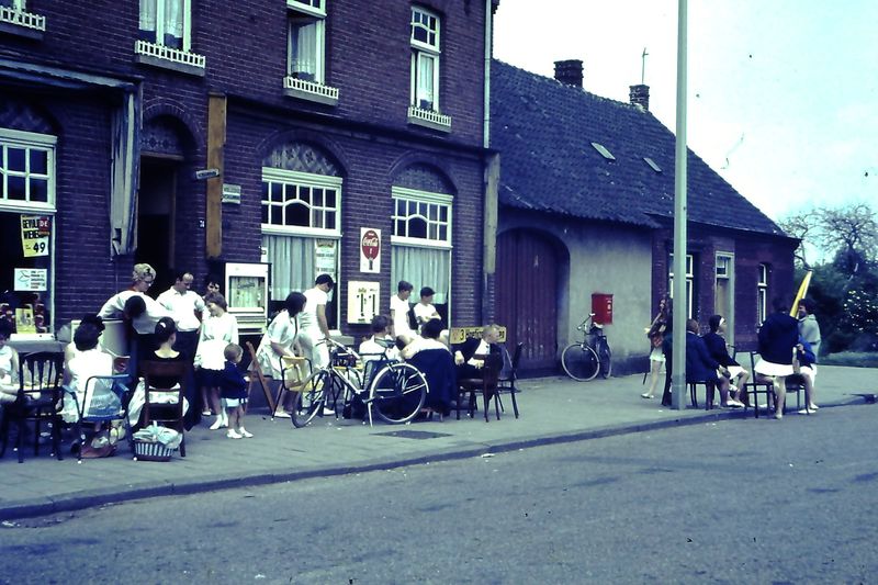 Café / Restaurant / Cafetaria | Café Schrijvers op de hoek Kesselseweg - Past. Vranckenlaan. Met de gymclub uit Sevenum die daar logeerde. | Pastoor Vranckenlaan 110 | Reuver | 1-6-1963 | 1963 | |||