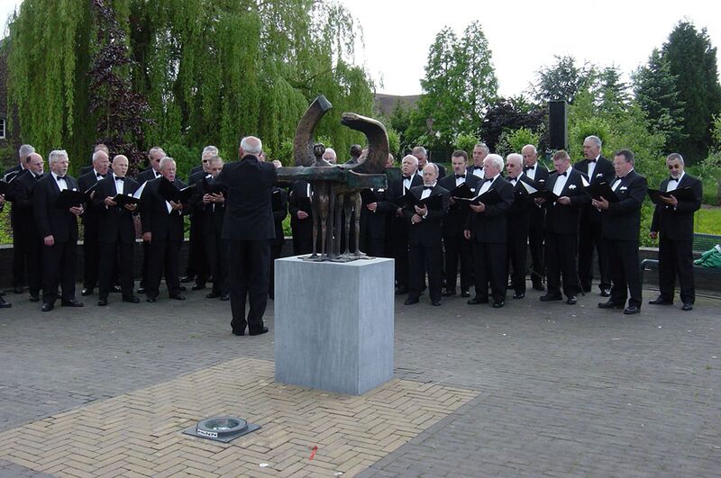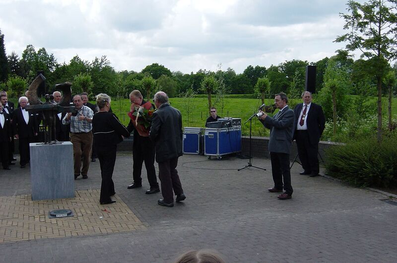 Gebeurtenissen | De Harmonie uit Swalmen bij de onthulling van het bronzen beeld van Wim Rijvers " Mensen tussen Swalm en Maas" | Swalmen | 21-5-2005 | 2005 | ||||