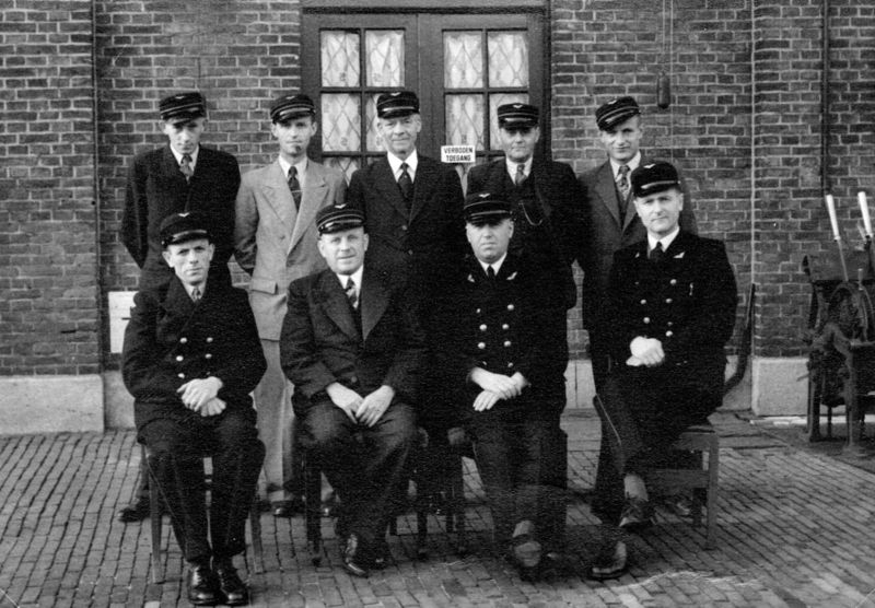 Personeel van de NS te Reuver van links naar rechts: Staande: 1 Cor Teunissen, 2 Simons, 3 Pier Konings, 4 Heldens, 5 Pierre Theunissen (zwager van Cor) Zittend: 1 Lemmen, 2 Kleyne, 3 Janssen (chef), 4 P. Vogels (opvolger als chef) Namen: P. Vogels |