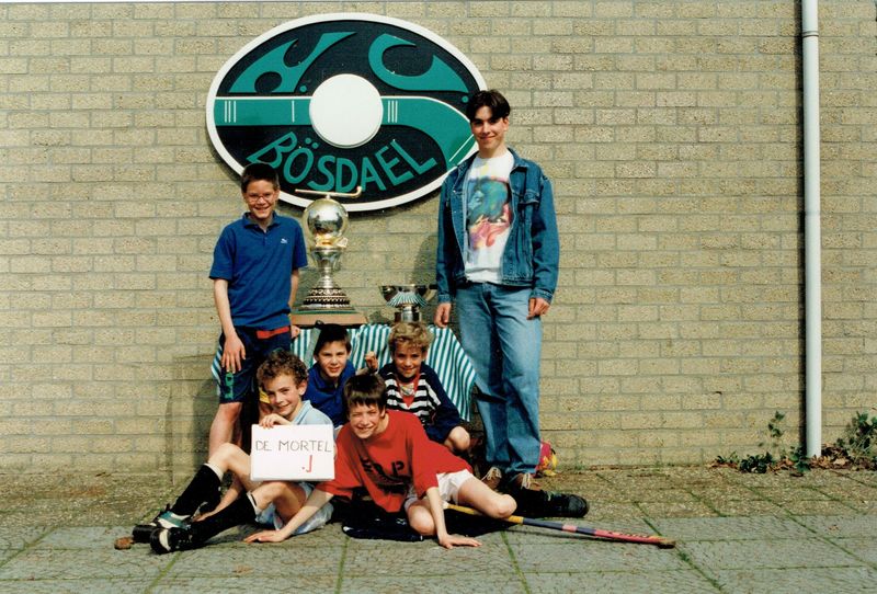 De hockeyclub Bösdael organiseert regelmatig een scholentoernooi. Hier zien we het team (1) van de Mortelschool. |