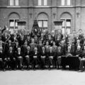 Het Philharmonisch gezelschap uit Reuver. Deze foto werd genomen bij het afscheid van notaris Eduard van Koolwijk. Van links naar rechts: zittend: 1 H. v.d. Velden, 2 C. Rinket (dirigent), 3 Leon Niemans, 4 Bér Vossen, 5 Jen van Eijk, 6 Pierre Lankes, 7 Jos Stox, 8 Sjra Goossens, 9 Peter Sangers, 10 Jos Janssen, 11 Pastoor Packbier, 12 Eduard van Koolwijk, 13 Willem Meuter (burgemeester en president van de Philharmonie). Nummers 3 t/m 13 is het bestuur van de Philharmonie. 1ste rij: 1 Meer ... |