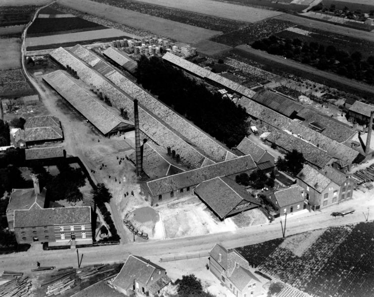 Luchtfoto van de NV Vereenigde Swalmer dakpannenfabrieken fabr. 4. Historie: 1899-1906 Stoomdakpannenfabriek J.W. Wuts-Meuter (Jan Willem Wuts) 1906-1926 N.V. Dakpannenfabriek Kluytmans Dobbelaere & Co - Overgenomen door M. Kluytmans en Dobbelaere 1926-1936 N.V. Vereenigde Swalmer Dakpannenfabrieken nr.4 1936 Faillissement 1945-1966 N.V. Kleiwarenindustrie Swalmen Vennootschap over naar Verenigde Bredero bedrijven N.V. te Utrecht. Onder naam N.V. Kleiwarenindustrie Swalmen ondergebracht Meer ... |