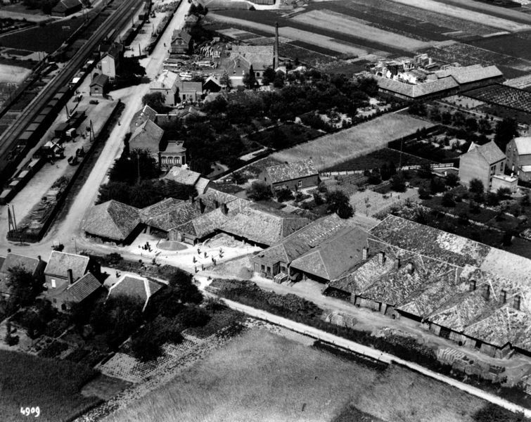 Luchtfoto van de NV Vereenigde Swalmer Dakpannenfabrieken fabr. 1. Historie 1908 Dakpannenfabriek Opgericht door Antoon Hermans 1910-1922 Stoomdakpannenfabriek A. Hermans & Zonen? Antoon Hermans 1913-1918 Firma Hermans & Simons 1918 Hermans & Co 1922-1924 Pannenfabriek Gebr. Herrmans Zonen Johannes Stephanus en Theodorus Hubertus Hermans. 1922-1924 Electr. Dakpannenfabrieken Hermans & Schouenberg Samenwerking met Henricus Schouenberg 1924-1936 N.V. Vereenigde Swalmer Dakpannenfabrieke Meer ... |