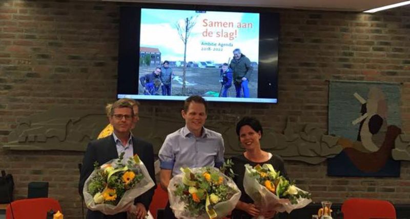 De nieuwe wethouders voor de periode 2018 - 2022 zijn beëdigd. Van links naar rechts: Marcel Roeloffs, Bas Jacobs en Debbie Heesakkers |