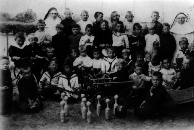 Groepsfoto van de bewaarschool uit 1927. van links naar rechts: bovenste rij: 1 Jan Heldens, 2 Piet Brinkman, 3 Harrie Willemsen, 4 Wiel Franssen, 5 Paul Thijssen, 6 Mathieu Vossen, 7 Harrie Hermans, 8 Michel Naus, 9 Pierre Heldens, 10 Nico Feijen. middelste rij: 1 Lies Peeters, 2 Truus Verführt, 3 NN, 4 NN, 5 Pierre Wilms, 6 NN, 7 Piet Julicher, 8 Graadje Wolters, 9 NN, 10 NN, 11 Sjeng op 't Rood, 11 Doortje Teunisse. Voorste rij: 1 Rotthof, 2 NN, 3 Maria Franssen, 4 R. Meiboom, 5 Michel Pe Meer ... |