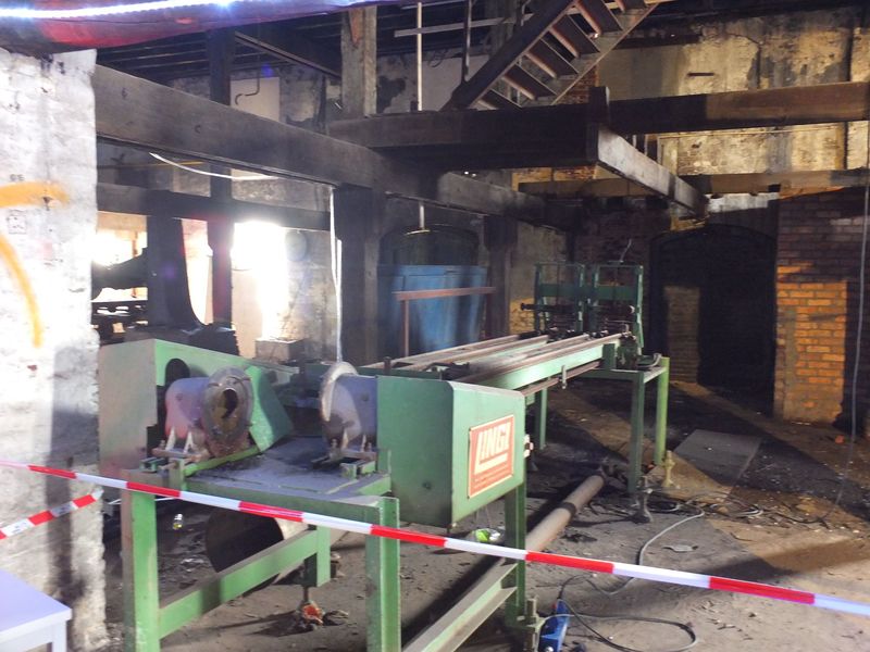 Tijdens de dag van de bouw op 2 juni 2018 kon de oude fabriek van Teeuwen bezichtigd worden. Op de foto zien we een van de machines die gebruikt werden voor de fabrikage van de gresbuizen. |