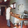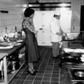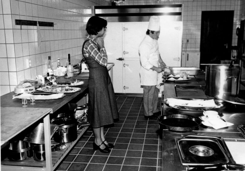 Bouw en opening van het sportcentrum " De Poelder". De keuken van het sportcentrum met rechts als kok Philippe Mattioni van Chez Philippe uit Venlo en links zijn vrouw |