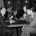 Bouw en opening van het sportcentrum " De Poelder". Ab van Loon (links) met twee onbekende gasten. |