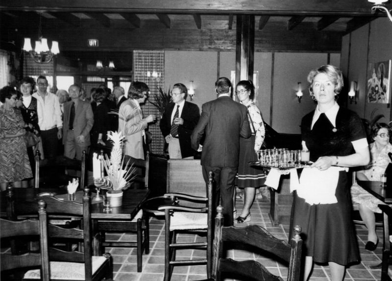 Bouw en opening van het sportcentrum " De Poelder". Opname van de receptie, rechts Marjan Pieper |