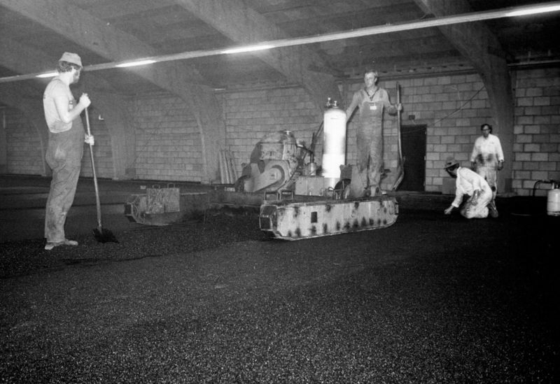 Bouw en opening van het sportcentrum " De Poelder". De Recaflex vloeren worden gelegd door C. Voigt Söhne uit Castrop Rauxel (D). Deze vloer was de eerste vloer van dit type in Nederland.. |