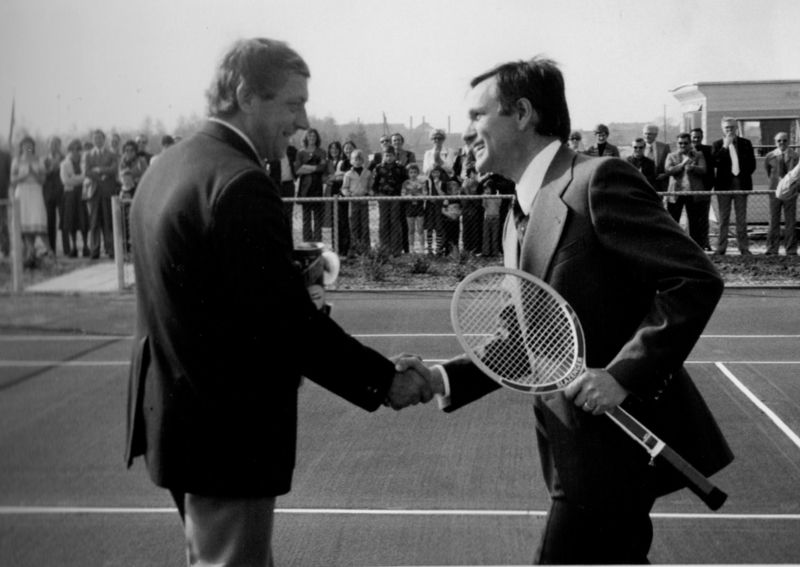 Bouw en opening van het sportcentrum " De Poelder". De tennisbanen worden geopend door Piet Vissers (burgemeester) en Jan Janssen den hollenger eigenaar den Poelder) |