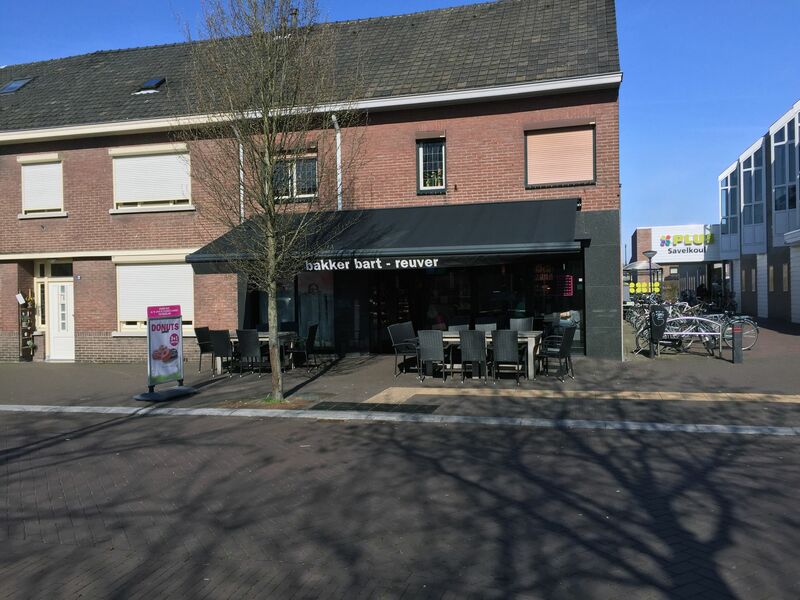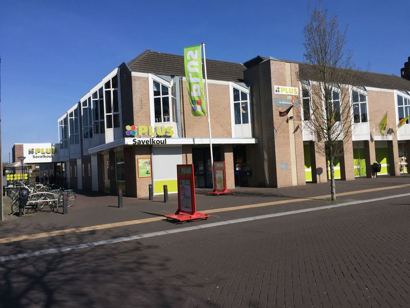 Supermarkt PLUS Savelkoul Reuver. Boven de supermarkt ligt de bibliotheek. De eerste stenen van dit pand werden in 2005 neergelegd. |