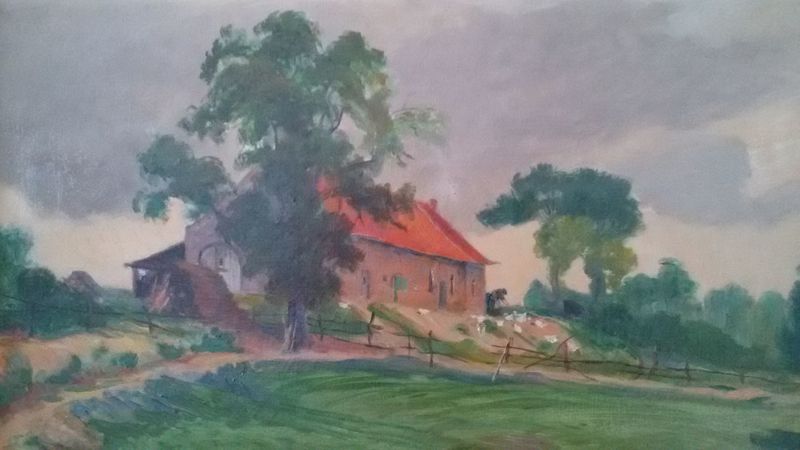 Schilderij van de boerderij Op den Berg 1 in Belfeld van Wijnandus Aloisius Geraedts , een Nederlands kunstschilder. Geraedts volgde zijn opleiding in Antwerpen en München en werkte daarna behalve in Nederland ook in Duitsland, Frankrijk, Italië en de Verenigde Staten. Geboren: 5 juni 1883 Overleden: 19 mei 1958, Leiden |