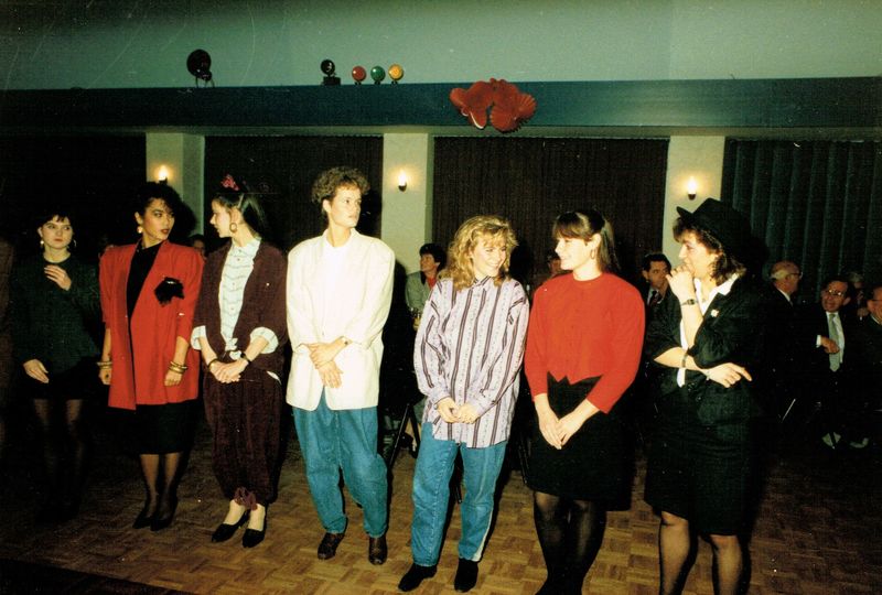 Verenigingen en organisaties | Tijdens de viering van het 75-jarig bestaan van de gymnastiekvereniging Hercules werden o..a. gehuldigd de dames (vlnr) 1 Elianne Lormans, 2 Mandy Maass, 3 Wilmie Achten, 4 Evelien Sniekers, 5 NN, 6 NN, 7 NN | Rijksweg 20 | Reuver | 1978 | ||||