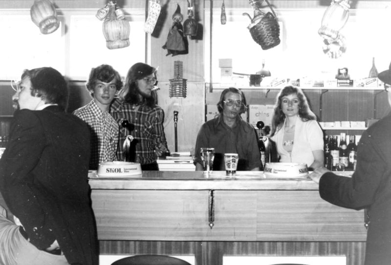 Gemeenschapshuis De Schakel. Vrijwilligers achter het buffet. Van links naar rechts: Ton Verlijsdonk, Stef Backus, ? Denessen, Wim Goertz, Anita Coenen |