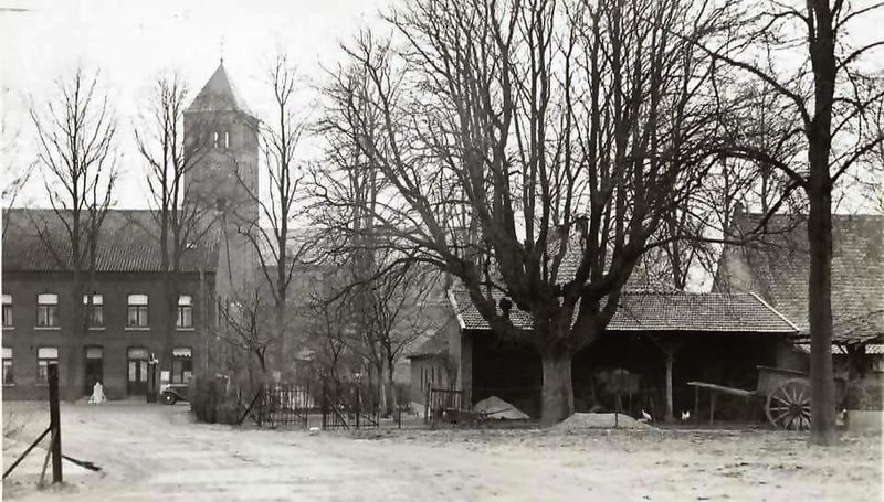 Gebouwen overige | Links zien we de woning van de burgemeester J.Jacobs op de Rijksweg (later hotel - Café - Restaurant Midden Limburg) en op de achtergrond de oude Waterstaatskerk en rechts de boerderij Engelen alles gezien vanaf de markt in Belfeld. | Markt | Belfeld | 1930 | ||||