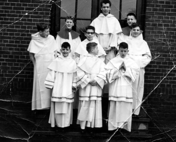 Misdienaars Klooster Heilig Hart. Bovenste rij van links naar rechts: Jan Jacobs, Harrie van der Avoort, Jan van der Avoort, Martien Jacobs, Pieter de Graauw, Frans van Gassel Onderste rij van links naar rechts: Wim de Graauw, Bart Bors, Harrie Konings |