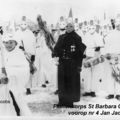Het trommel- en fluiterkorps St. Barbara trekt door Offenbeek met op kop tamboer-maître Baér Dorssers. Voorste rij : Joop Gijzen – Piet Franssen – Piet Killaars – Piet Killaars – Coen Ottenheim |