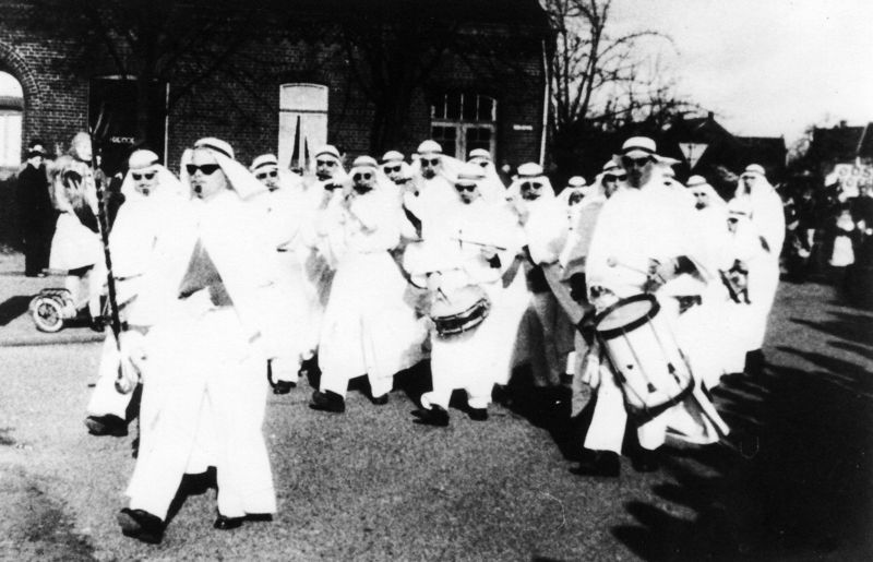 Verenigingen en organisaties | Het trommel- en fluiterkorps trekt verkleed mee met de carnavalsoptocht. | Mariastraat | Offenbeek | 1960 | ||||