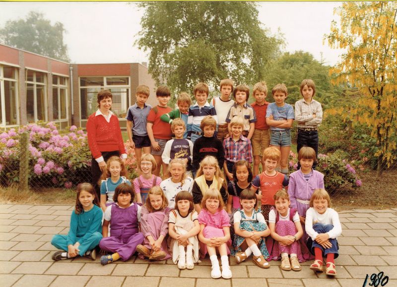 Onderwijs | Groepsfoto van klas 3 van de Maria Gorettischool uit het schooljaar 1979 / 1980 met juffrouw Maria Ligthart. | Den Roover 8 | Reuver | 1980 | ||||