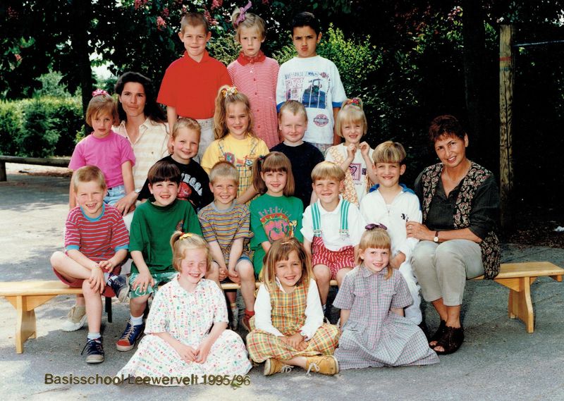 Onderwijs | Groepsfoto van groep 3 van de Leewerveldschool uit het schooljaar 1995 / 1996 | Gouverneur van Hövelllaan 31 | Reuver | 6-6-1996 | 1996 | |||