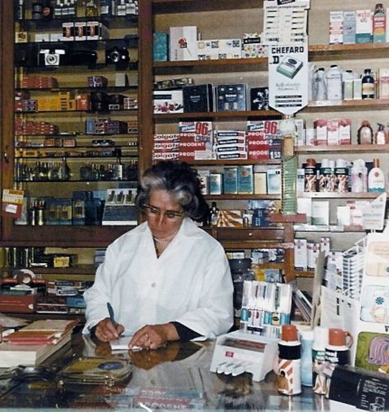 Winkels | Maria van Gassel - Goossens achter de toonbank in haar drogisterij. | Pastoor Vranckenlaan 12 | Reuver | |||||