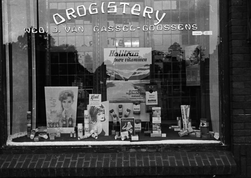 Gebouwen overige | De etalage van de drogisterij van Maria van Gassel - Goossens aan de Pastoor Vranckenlaan in Reuver. | Pastoor Vranckenlaan 12 | Reuver | |||||