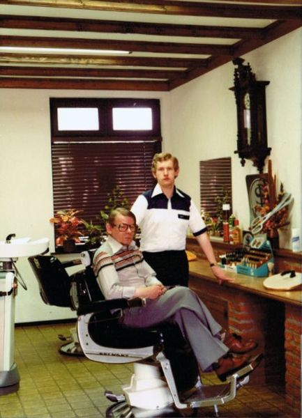 Diversen | Vader, Thei Steeghs ( Neutje ), en zoon Ton Steeghs in hun kapperszaak. | Pastoor Vranckenlaan 13 | Reuver | |||||