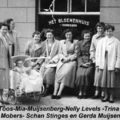 Enkele dames poseren voor het Bloemenhuis op de Pastoor Vranckenlaan (later zat hier de schoenwinkel van Dorssers) in Reuver. van links naar rechts: Corry Muijsenberg - Toos Muijsenberg, Mia Muijsenberg, Nelly Levels, Trina Killaars, Mia Mobers, Schan Stinges en Gerda Muijsenberg |
