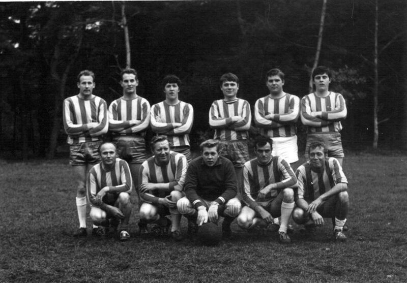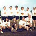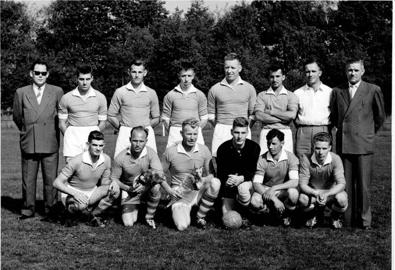 2 teams die tegen elkaar gaan spelen (links Tiglia? uit Tegelen en rechts S.V. Reuver) Van links naar rechts: voorste rij 1 ... 9 achterste rij 1 ..., 10 Sjaak van de Kerkhof, ..... 13 |