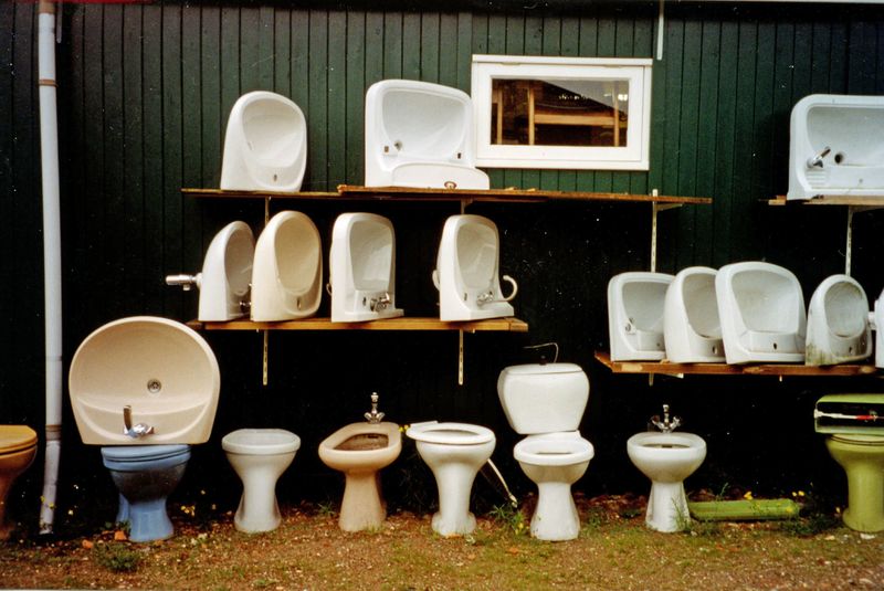 Verenigingen en organisaties | Kringloopcentrum BisBis aan de Broeklaan haalde en verkocht ook bruikbare bouwdelen op zoals wasbakken, aanrechten, kachels, toiletpotten, kranen, kozijnen, etc. De bouwdelen werden al in 1996 op de website van BisBis aangeboden en nauwkeurig omschreven. Op de foto een gedeelte van het assortiment. | Broeklaan 120 | Offenbeek | 1996 | ||||