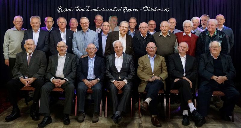 Reünie van de Sint Lambertusschool uit Reuver van oktober 2017 Bovenste rij: 1 Thei Stinges 2 Frans Snellen 3 Martien Smeets 4 Koos Augustin 5 Frits Timmermans 6 Coen Janssen 7 Broer Geraeds 8 Jeu Steeghs 9 Ton Bol 10 Sef Apeldoorn 11 Piet Spreeuwenberg 12 Jo Beurskens 13 Piet Houwers 14 Wim Meer ... |